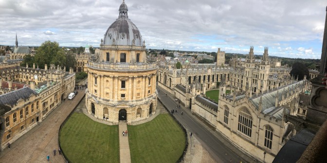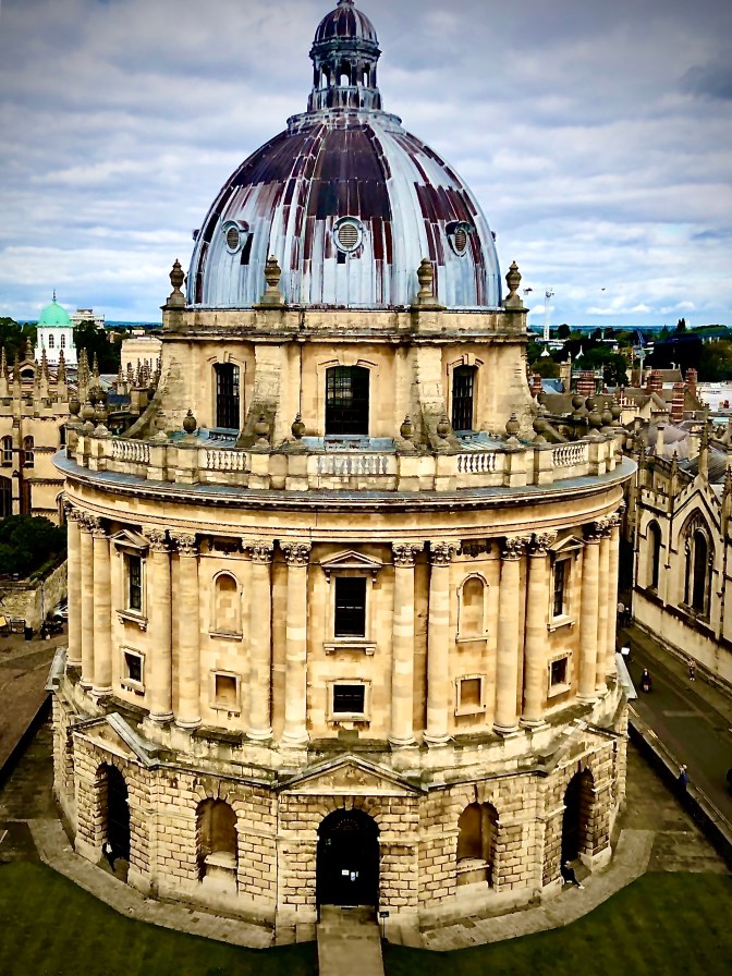 Oxford is the city of intellect. The city is comprised of “ vine draped walls and hallowed halls” * it is classically a city of libraries and churches, more libraries which smack of learning. The 30+colleges which makes up Oxford are filled with the world’s scholars.