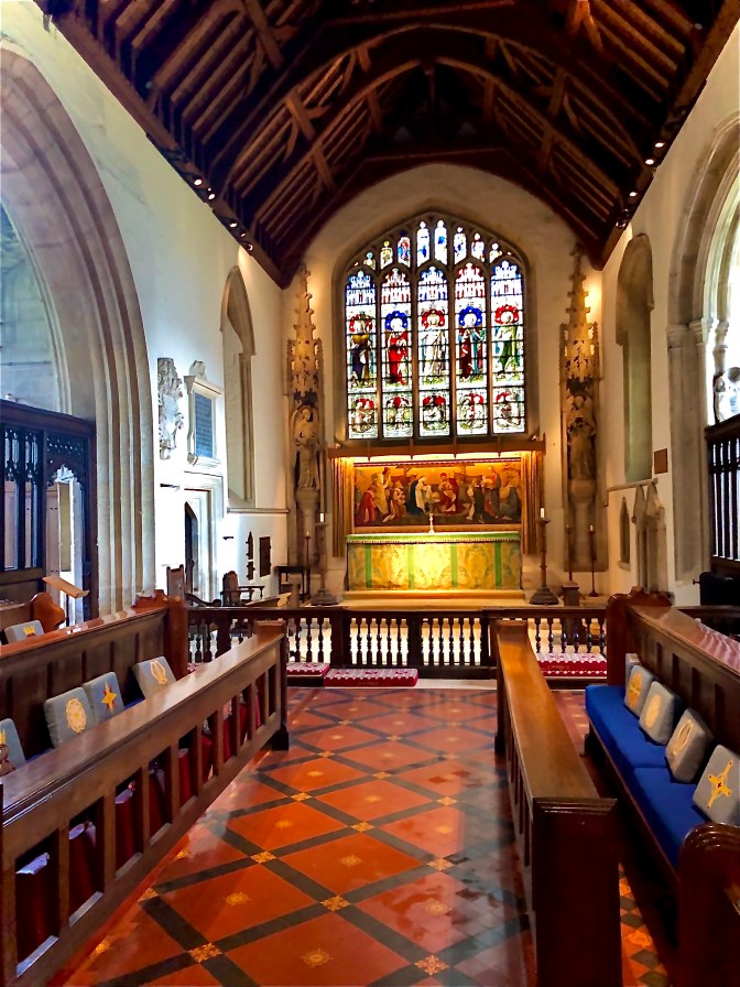 On one of our first days here, a woman we met suggested several must see places. We have seen many of them now, and with one day remaining we decide to check out one of theB’s…Burford. What a great decision. It is a beautiful medieval village. There is a wonderful church, St. John the Baptist, which despite being a treasure of history of the town from medieval times with lord of this village, who was despised for his harsh rule of the town( his crypt is memorialized with an impressive monument of both Lord Lawrence and Lady Tanfield and the notes alongside it tell how he and she were burned in effigy every year for 200 years, is still an active church.