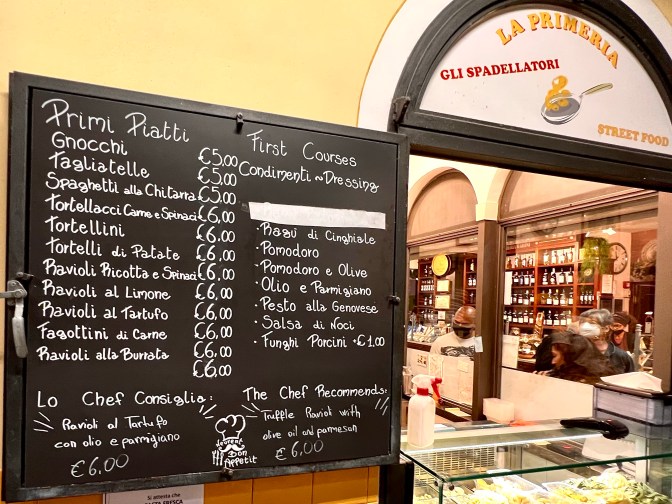 You can get a sandwich or a meal at many of the stalls. Last time we were here, one in particular had a line wrapping around the square. The La Primeria is has several varieties of fresh pasta to choose from.