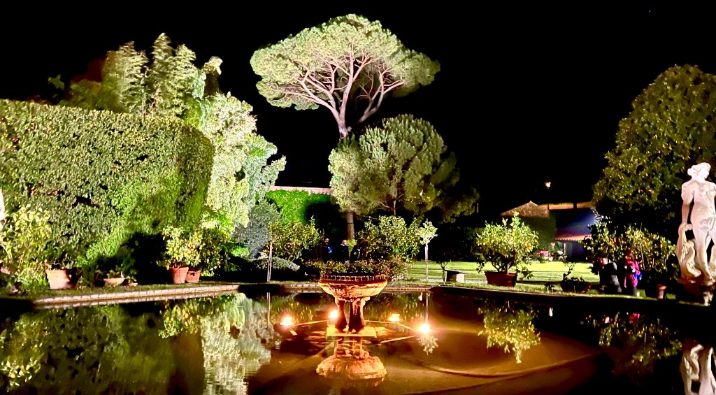 When the day nears the end… the concert that drew us here is about to begin, we realize the artistic pairing for this concert is by a botanist who impassionedly discusses the flora and fauna of the Villa grounds ( in Italian of course) for nearly an hour, only to give way to 2 brief selections by the Madrigal singers…