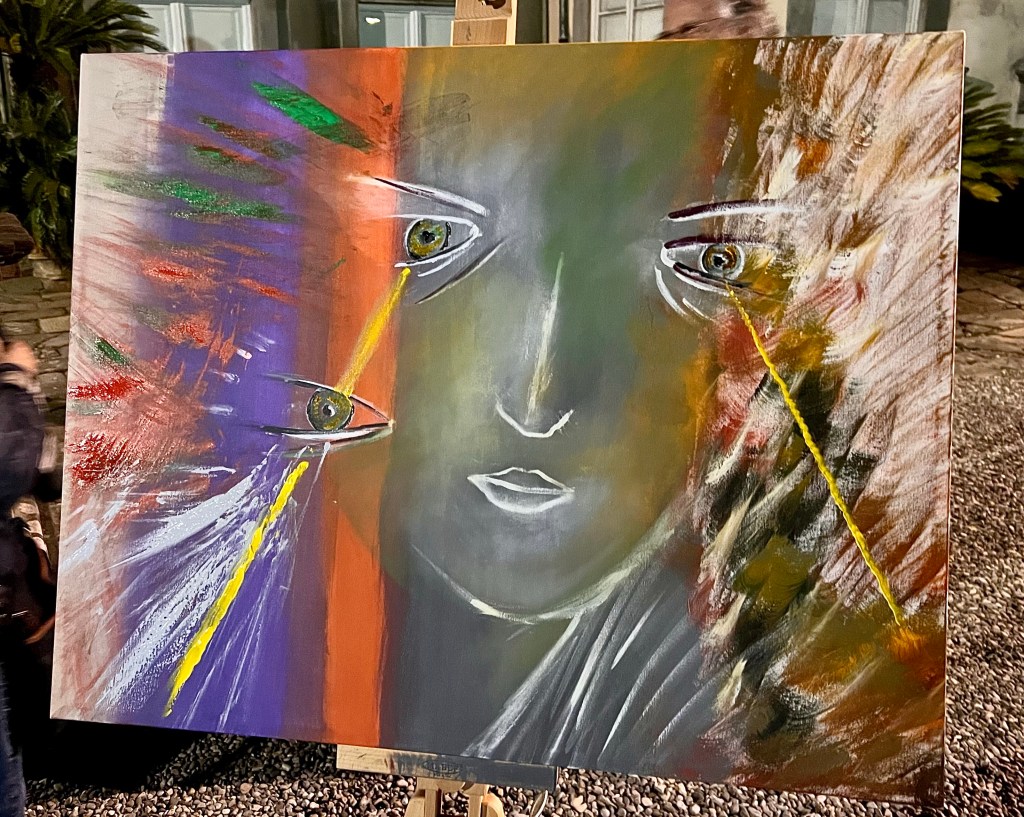 What we did not see coming, was the pairing of art mediums. The concert also allowed for guests to wander the gardens taking in the night while listening, a very dramatic recitation of poems regarding the night, the moon, the light and the death, and an artist who transformed a canvas from 4 columns of painted stripes to a story that expressed the emotion of the music. We questioned the start time and the format, but enjoyed it all nonetheless.
