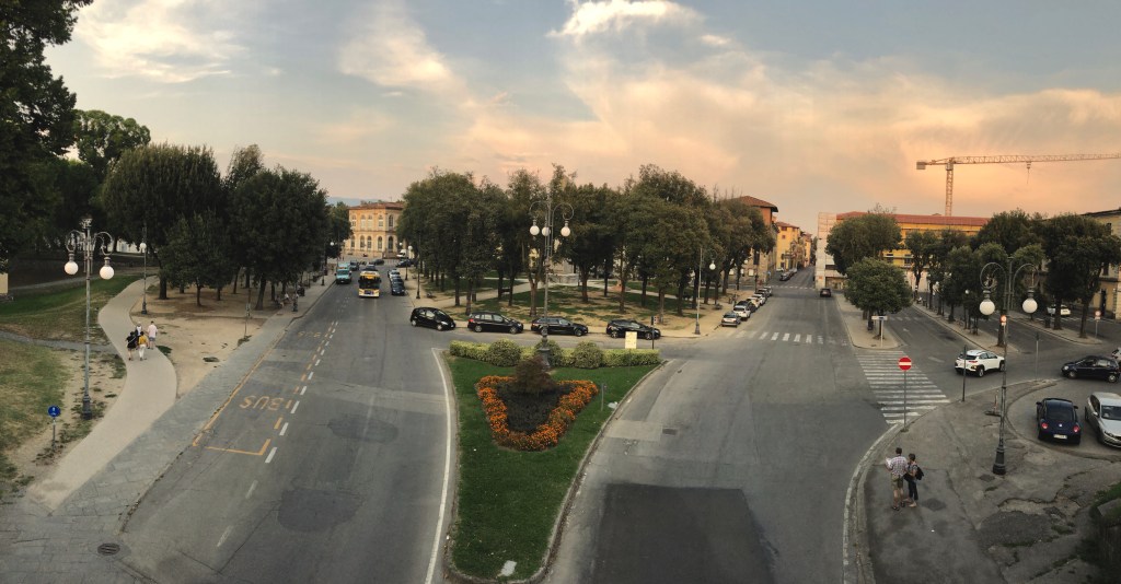 Arriving in Lucca this time, we can benefit from the lessons previously learned such as… which entrance to take to the wall if you want to use the ramp and not the stairs,( difficult to maneuver with suitcases) …
