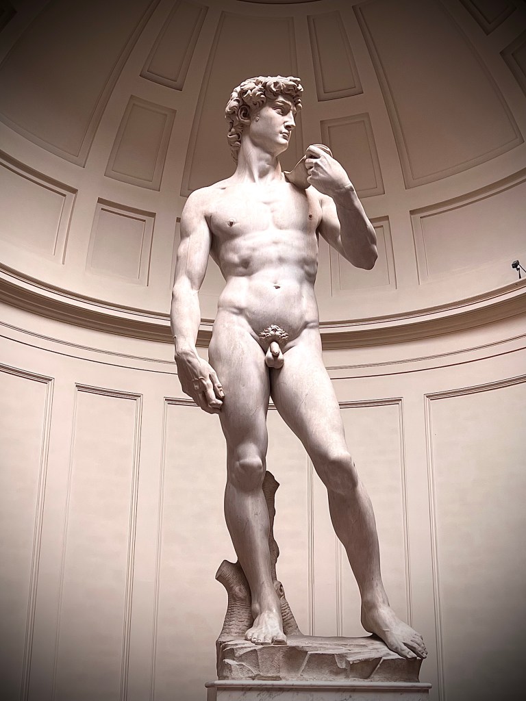 And when in Florence you must stop by to see David. While you’ll find him everywhere from atop the Piazza di Michelangelo, to in the square at the Palazzo Vecchio, to blowing a pink bubble gum bubble on sweatshirts on carts everywhere, the one to must see is in the Galleria dell’Accademia.