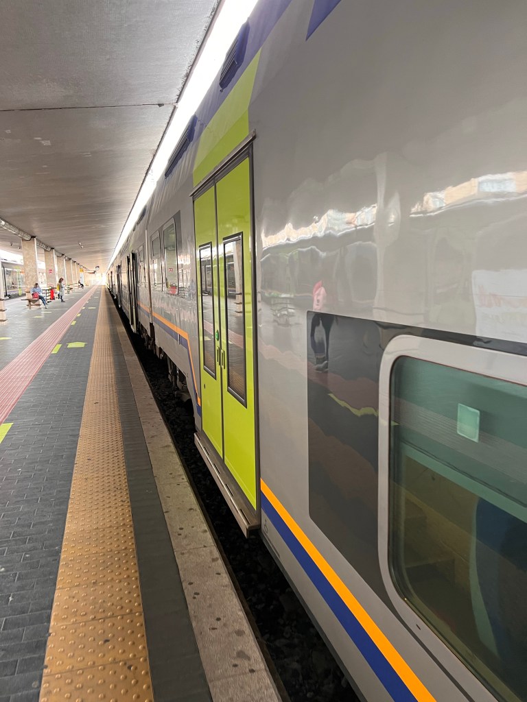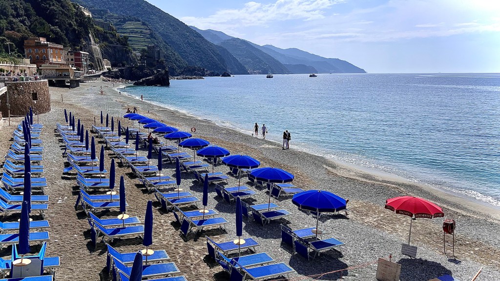 Train/bus challenge in the rear view we are off again. This time to the Ligurian Coast. Cinque Terre is perhaps one of the most picturesque and colloquial areas of Italy. The train to Viareggio, then on to Monterossa, the last of the Cinque Terre.