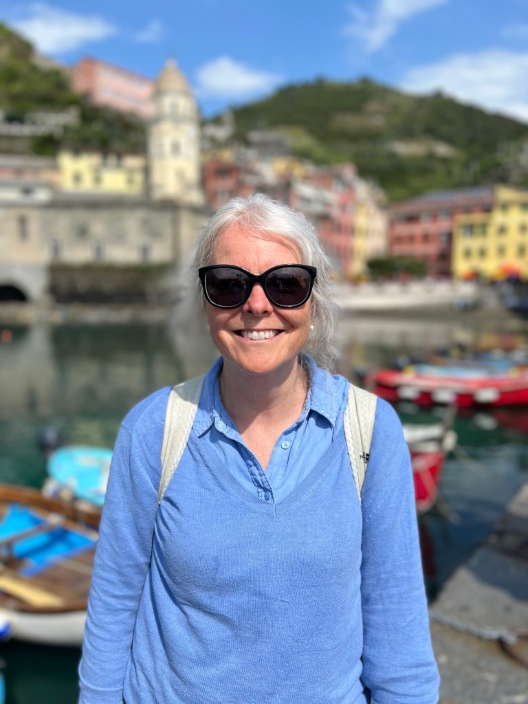 Eventually we climb down to the center of Vernazza, the jewel of the Cinque( personal opinion, but dare you to argue otherwise). While the weather app still claims no rain in sight the skies open and a drenching rain begins. Definitely time for a late lunch! Good food, good wine, good friends and the satisfying sense of accomplishment ( coupled with the relief that we do not need to backpack up and over to get home) and we leave the outdoor table to scurry inside and watch the clouds rain themselves out.