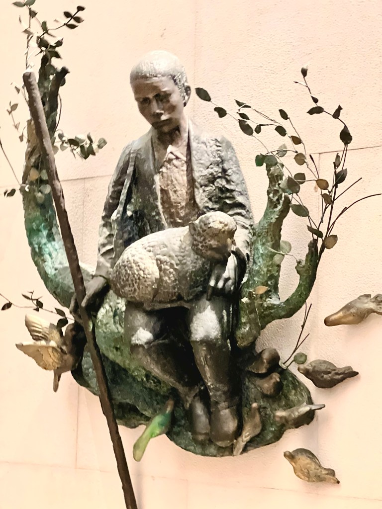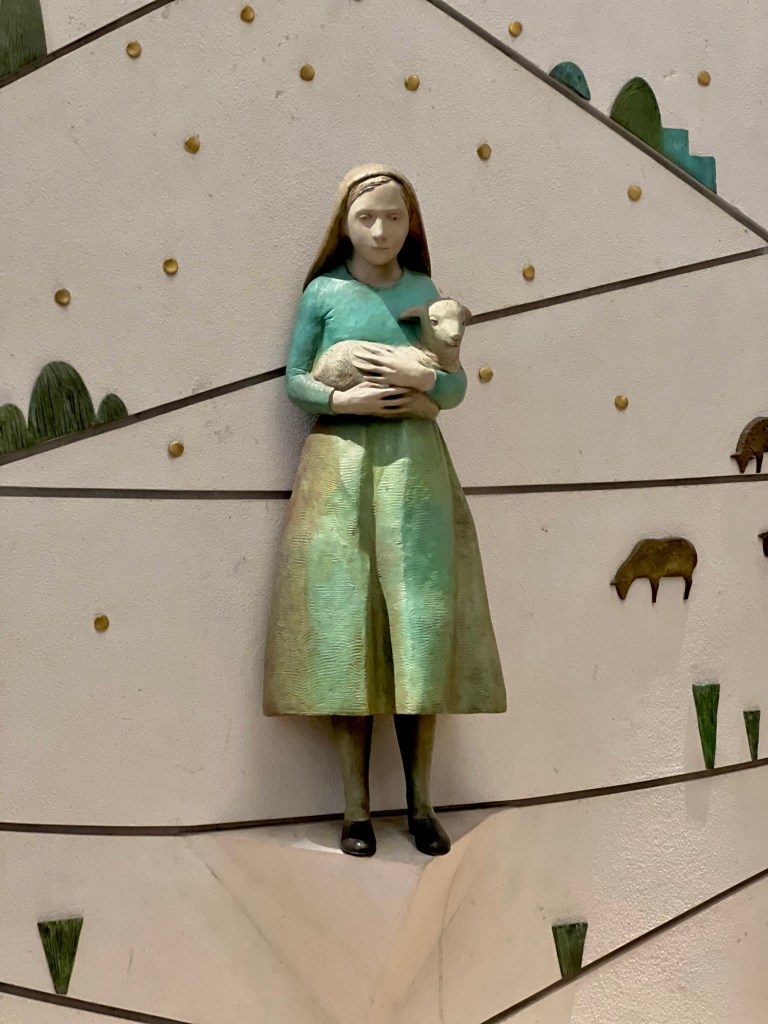 Inside the basilllica are the tombs of the children, two of whom died as prophesied as young children during the Spanish Flu pandemic. They were canonized as saints in 2017. Lucia, lived to adulthood, becoming a nun. She has since died and had been beatified, an early step in the process of being vetted for sainthood. On the walls of their tombs, the simply beautiful statuary hangs reminding all of their innocence and youth.