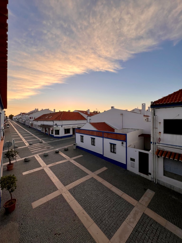 When we reach Porto Covo, the town is pristine. And deserted. We make our way past charming white cottages with blue trim, mostly closed restaurants, to our guest house. It is charming and when all is said and done we are alone in the guest house. When we get locked out ( the European hand written access code where a 4 and a 9 look alike to our American brains) left us out in the cold until we recognized our error!