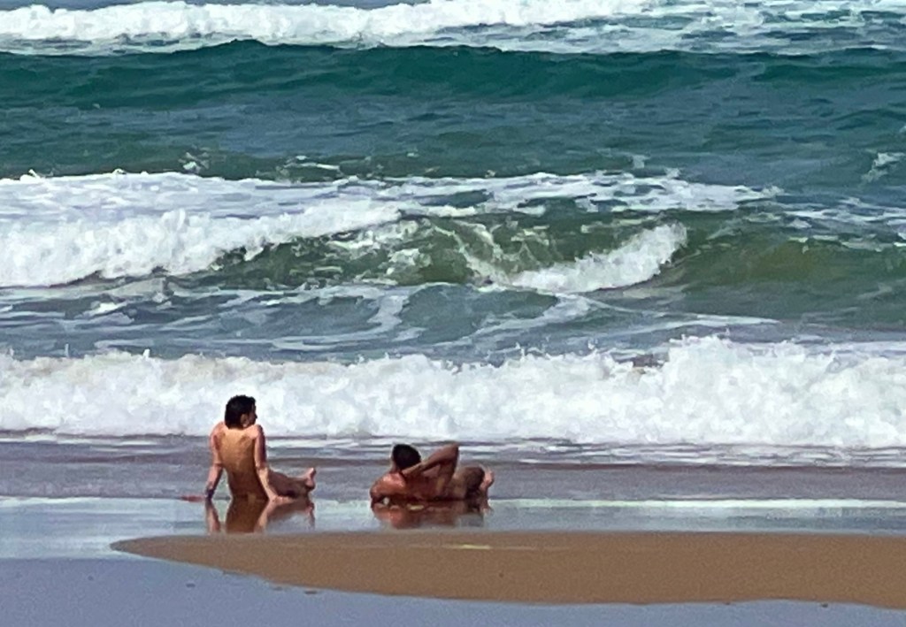 Off in the distance we see some people taking advantage of the calmer inlet to swim in the crystal clear water. They seem to be embracing communing with nature. Looks great, but we do not have our bathing suits…..Then we come across the sign… ah yes, naturalists have come to the right place. Hmm, maybe better not.