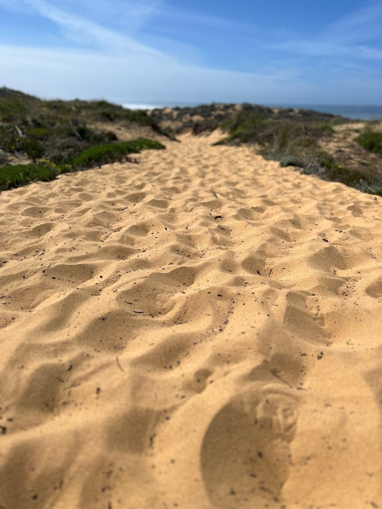 We are struck by the contrasts along the way. At times there is so much sand, the trail is desert like.