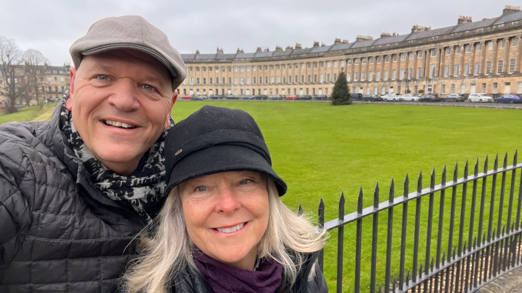 Our final destination for day one of this trip however is Bath. Bath is the elegant city which grew in power and prestige throughout history. It is a nostalgic return for us as we were here in the summer nearly 40 years ago on our honeymoon.