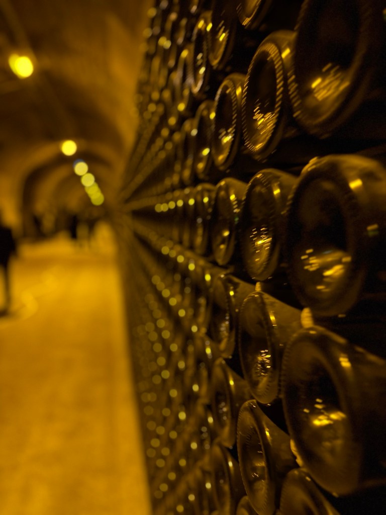 They are underground cathedral-like caves dug out to 131 ft deep. Ruinart boasts the largest. The caves are cool, moist and dark, a naturally controlled temperature underground which is ideal for aging the vintage.