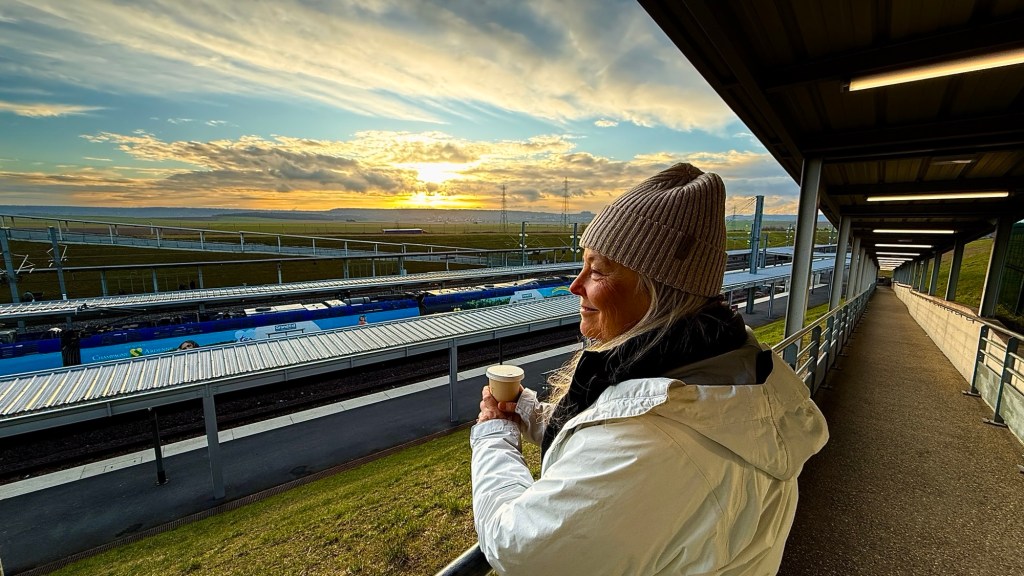 After such an exquisite day, we made our way back to the train station. As our day came to an end, our journey back took us to a more remote station out in the country where we were treated to a beautiful winter sunset that painted the sky as we sipped a chocolate chaud! Ah! La vie en rose!