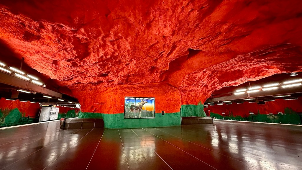 Beneath Stockholm, art meets commute — a fiery cave where the subway feels like a gallery