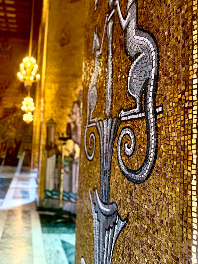 A visit to Stockholm is not complete without a tour of the city hall. The Blue Hall (made of red brick) and the golden hall (shimmering wash of tiny gold mosaic tiles) are the back drop for Swedish governance and daily life.