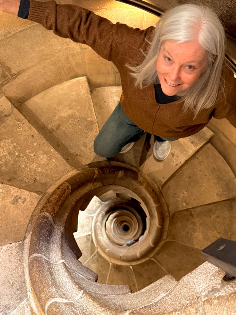 Down the spiral stairs of Sagrada Família tower — 400 steps later and our legs are officially more Gaudí than graceful.