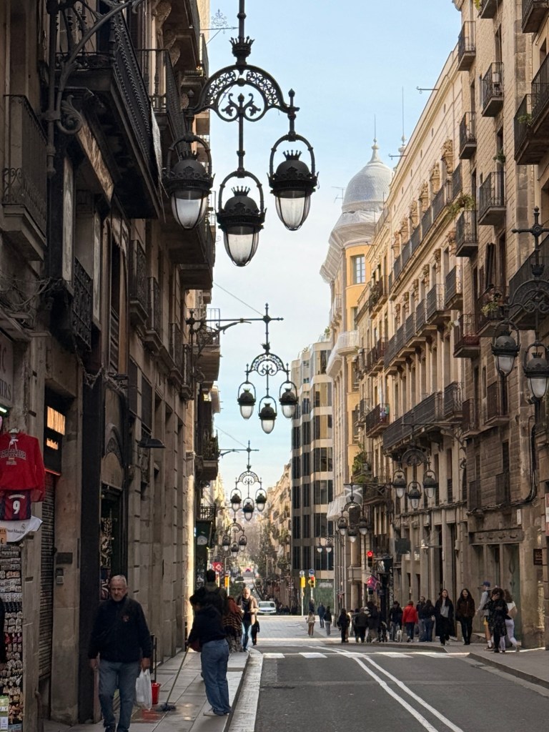 Wrought-iron lanterns and timeless facades — wandering the elegant streets of Barcelona’s old city.