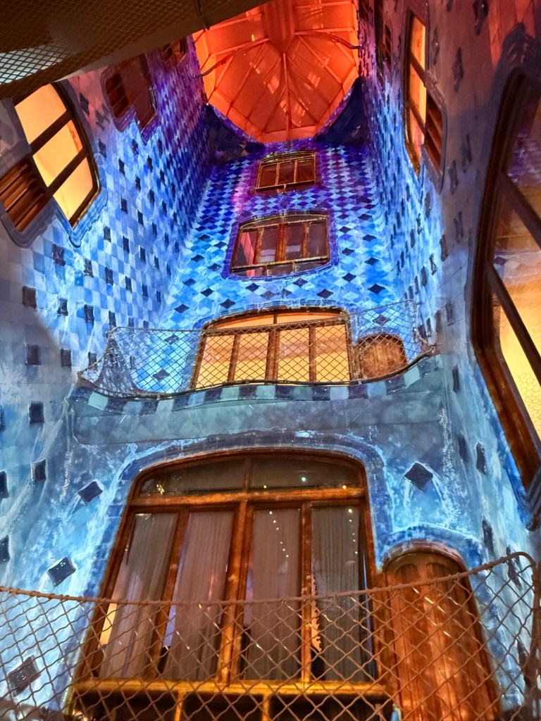 Diving into a dream of blue inside Casa Batlló — where walls ripple like the sea and imagination rules.